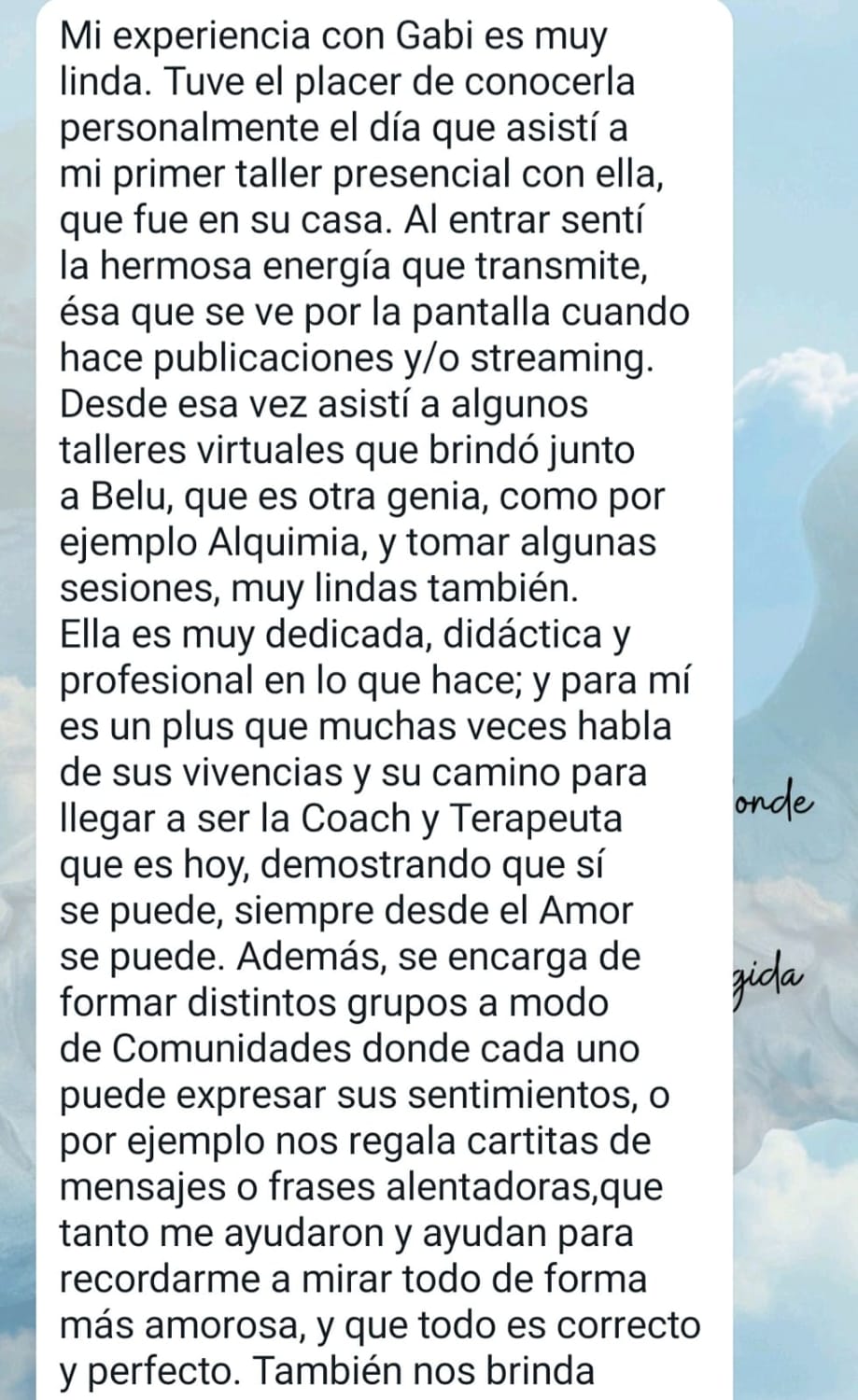 Acompaño procesos vividos y conscientes.
